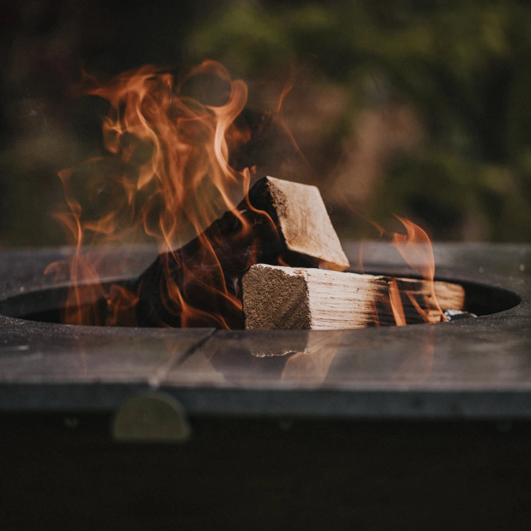 Im Inneren arbeitet die Edelstahl-Brennkammer, die für einen sauberen Luftstrom und einen effizienten Abbrand sorgt. Holz rein, Feuer an – der MOESTA ONE reagiert direkt und hält die Hitze zuverlässig auf der Platte.