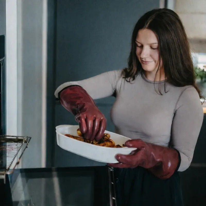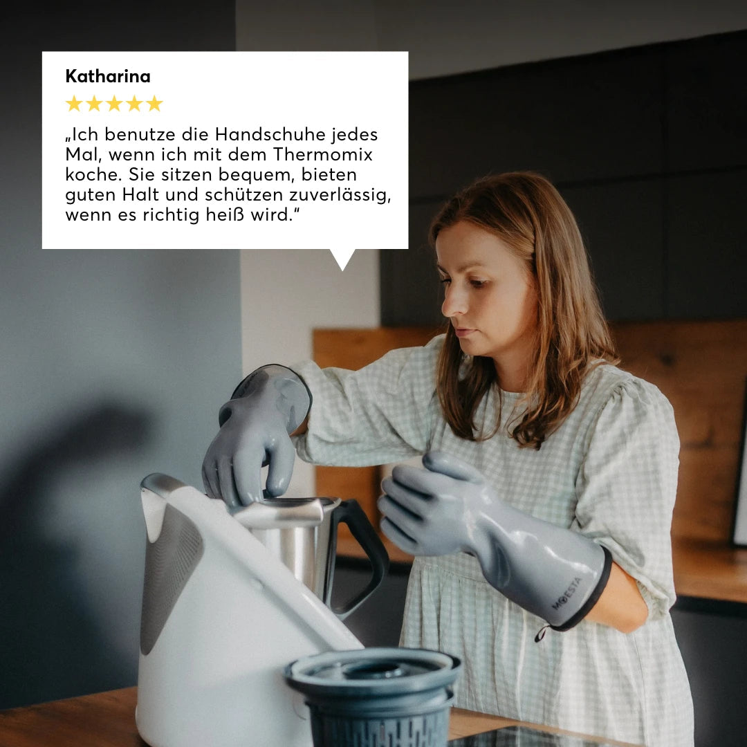 Mit einer Hitzebeständigkeit bis 350°C schützen sie zuverlässig vor Verbrennungen.