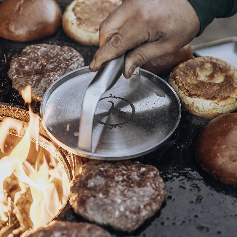 Die optional erhältliche BBQ Disk verwandelt ihn in eine vollwertige Grillstation. Auf knapp Ø 750 mm Gusseisen entstehen verschiedene Temperaturzonen – perfekt für Fleisch, Gemüse oder Spiegelei am Morgen danach.